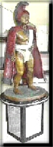 The bronze figures were commissioned by David Murdock. It took Edward about four months to complete the figures. He also designed the marble bases. They have all been delivered to Hawaii. The pieces are of King Kamehameha I, 1759? - 1819, who was the first king to unify and rule the Hawaiian Islands. King Kamehameha was very large man, some say seven feet tall, weighting 300 hundred pounds. The feather cape that the king is wearing required thousands of tiny feather to make one cape. The birds were often caught by the Kahunas (Hawaiian Priest) and after removing only a few feathers from each bird, the bird was then released. The capes were worn to display rank, not wealth. |