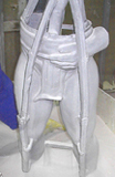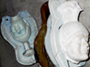 The first step in creating a bronze is to create a master. In this case a clay master was first made then a plaster master was made over it and re-sculpted. Silicon molds were made over the plaster master; then a fiber glass mold was created over the silicon molds. This is done to give the silicon molds rigidity.