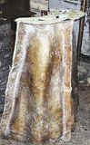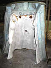 The investment molds are then placed in an warm oven where the wax melts, leaving a cavity. This is where we get the term "lost wax process".