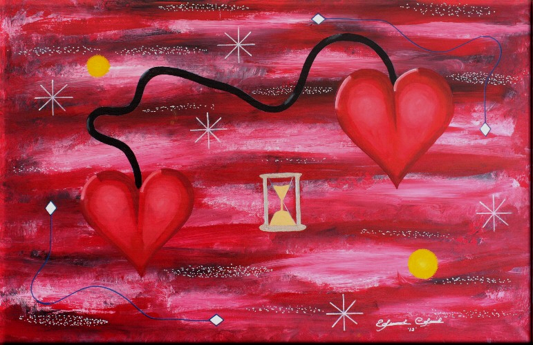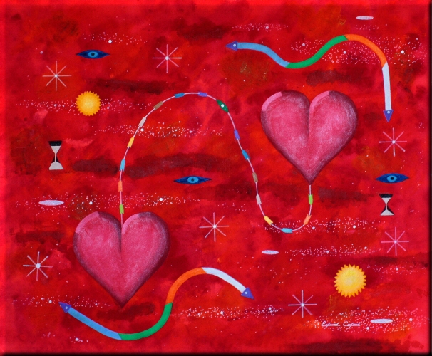 Cosmic 2 Hearts Black -Red Connected 36" X 24"/ Oil On Canvass Signed - Edward Colarik |
