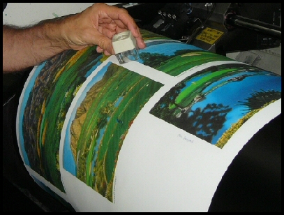 The corrections are completed and the giclee is created During the creation  procees the pieces is stopped. Another inspection is done to insure the highest quality.