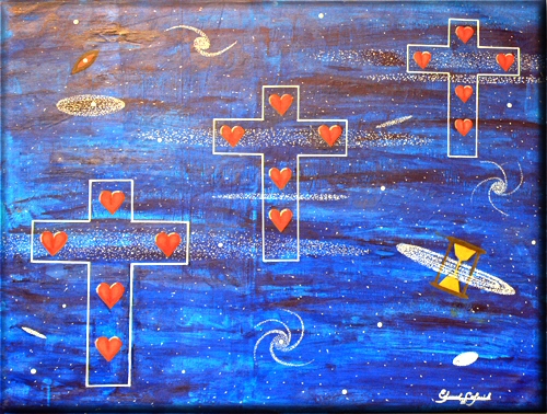 COSMIC SERIES PAINTINGS AND COSMIC HEARTS, IN THE COSMOS FLOWS THE PULSE OF OUR HEARTS AND THE RHYTHM OF OUR LIFE'S ENGERIES |