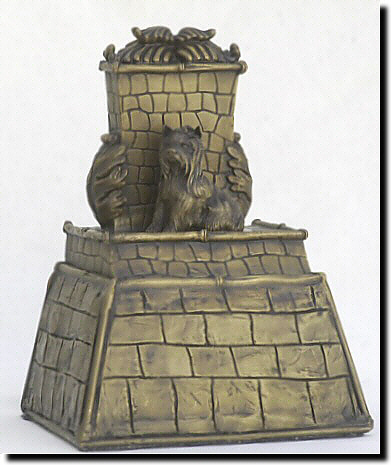 Pyramid Bronze Memorial Size 9" x 7" x 5" Price $600 - $720 with any small bronze dog as shown