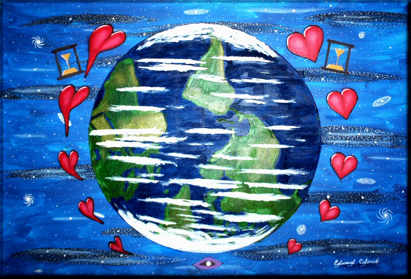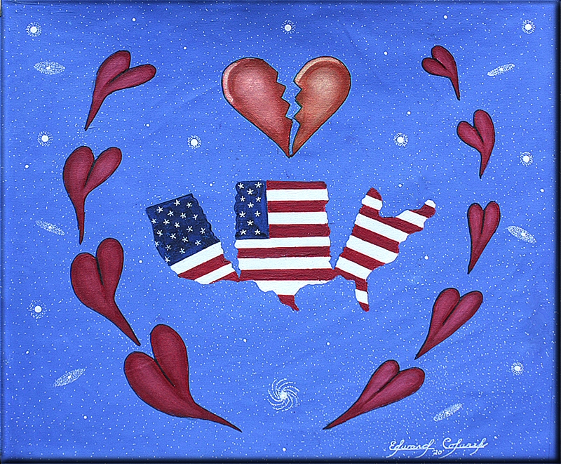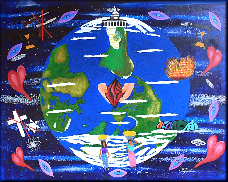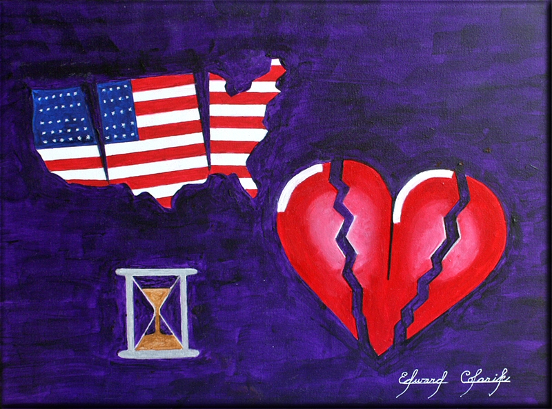 Much of the country is starting to be aware we are running out of time. The background color purple represents our naivete, our adolescence on what has been happening. 24" X 18"/ Original Oil On Canvass - Signed |