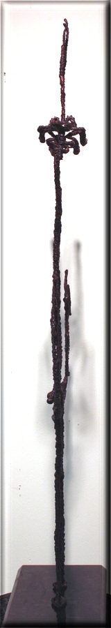 Edward Colarik's unique dreamlike elongated bronze art figures are also technical marvels. Not since Giacometti has a Surrealist bronze sculpture appeared so graceful and delicate. The foundry where the art pieces were to be made, stated the figures could not be cast successfully. The figures were to be cast bronze figures -not wire sculptures- although they were to look like wire sculptures . It was believed that the figures were too fragile and too thin to cast and would not hold together. Colarik is one of the few artists that has personally done almost every aspect of creating a bronze figure in a foundry. He knew what could and what could not be done in producing bronze sculptures. After three months of trial and error he finally succeeded in bringing forth a technique that allowed his vision to become a reality. Price $15,000 |