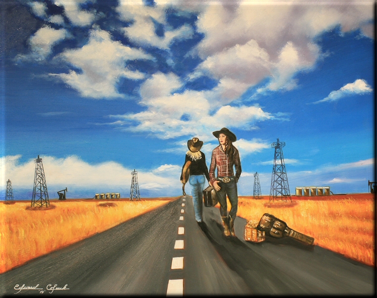 EDWARD COLARIK'S ORIGINAL ART PAINTINGS SET IN GAS & OIL SETTINGS |
