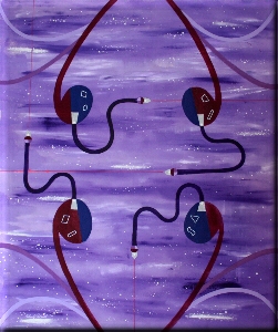 Cosmic Hearts 2 Blue -s 12" X 12"/ Oil On Canvass-13s Signed - Edward Colarik