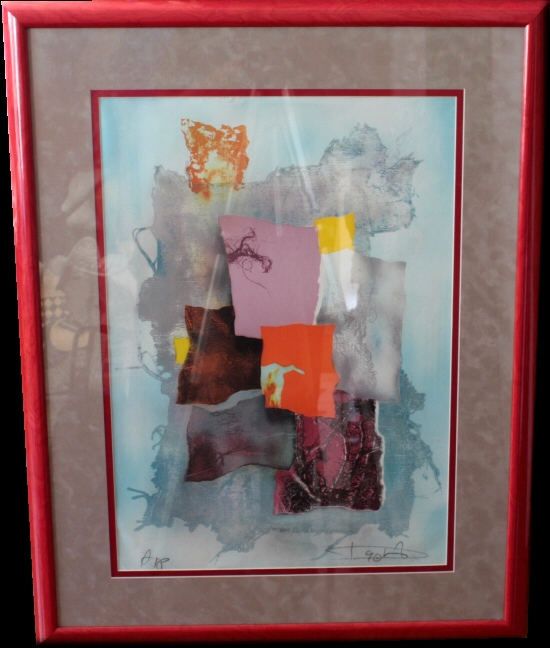 The abstract piece is an Artist Proof, colored lithograph, signed by Dus. Condition is excellent. Size: 24” x 18” |