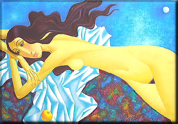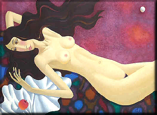 NUDE WITH APPLE #6 40" X 32" SIGNED OIL ON CANVAS |