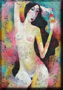 NUDE WITH APPLE #7 40" X 32" SIGNED OIL ON CANVAS |