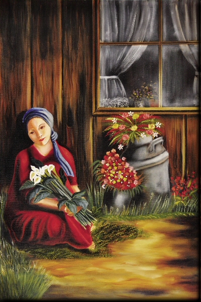Helping Mommy Oil Painted Mix Media On Canvass |